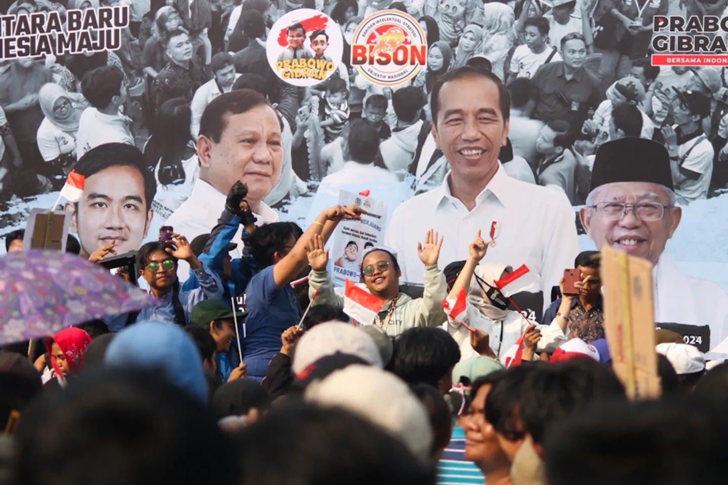 Sementara itu, masih ditempat yang sama ratusan masyarakat yang tergabung dalam berbagai komunitas dan organisasi menggelar aksi kongres rakyat Indonesia, asik berjoget dan orasi dukungan terhadap pemerintahan Jokowi dan menyambut pemerintahan yang akan dipimpin Prabowo Subianto. (DETAK/Aip Kurniawan)