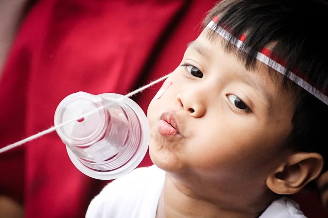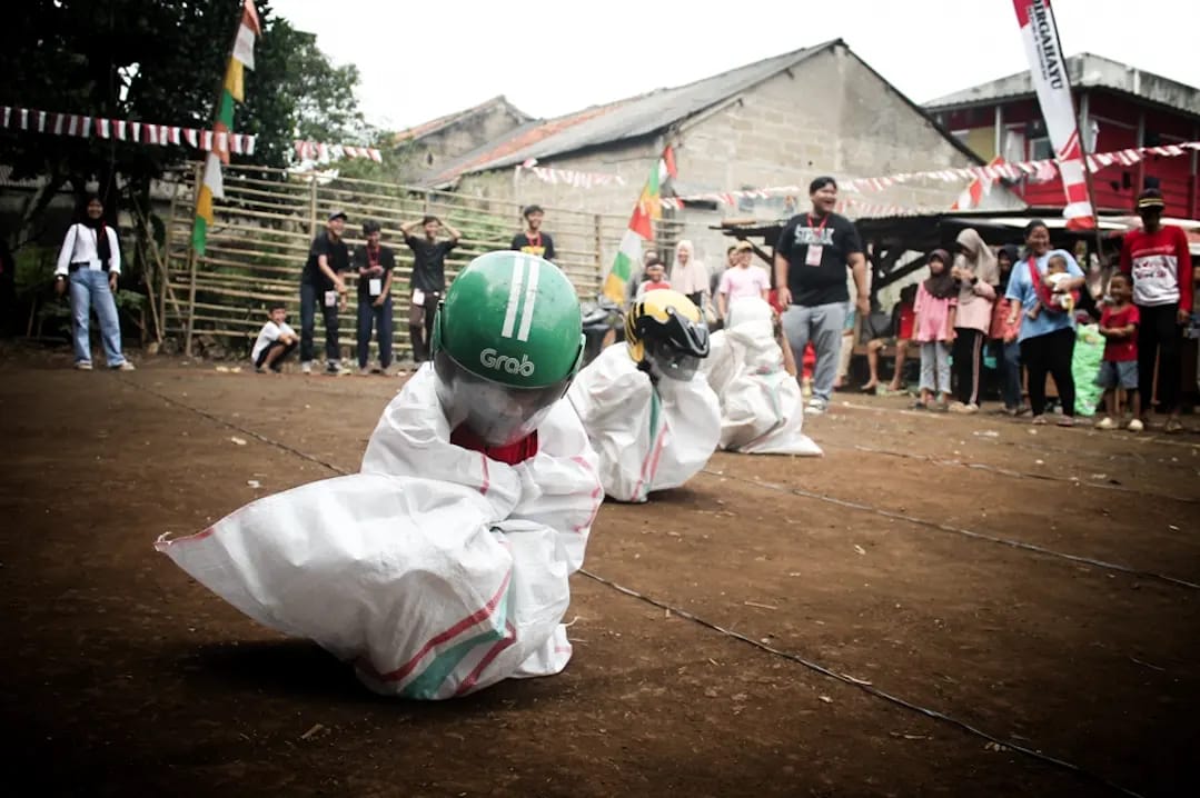 detak.co.id, TANGSEL – Anak-anak mengikuti lomba saat perayaan Hari Ulang Tahun Republik Indonesia ke-79 di Serpong, Tangsel, Sabtu, (17/8/2024). Sejumlah permain seperti makan kerupuk hingga balap karung turut memeriahkan acara. (DETAK/Aip Kurniawan)