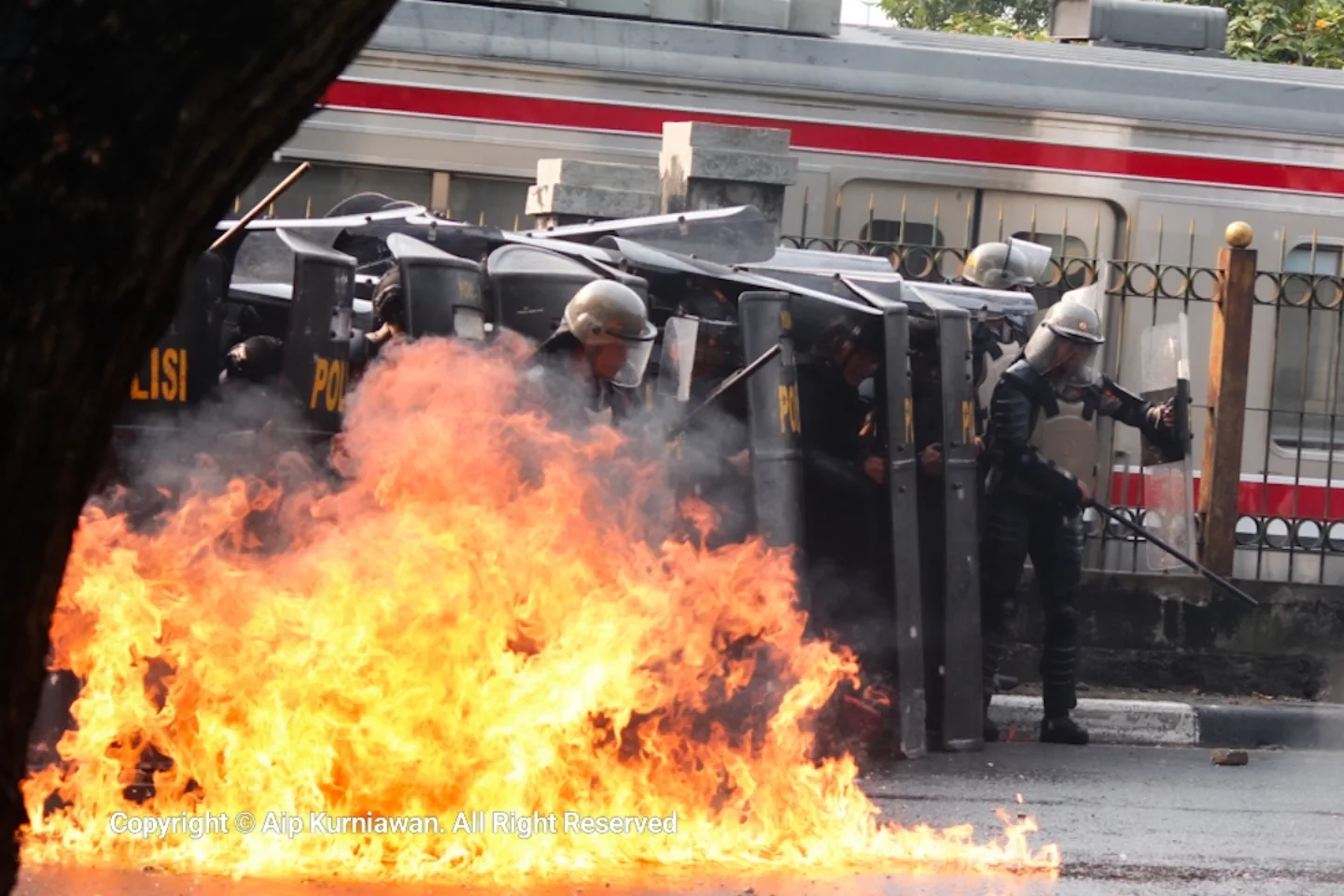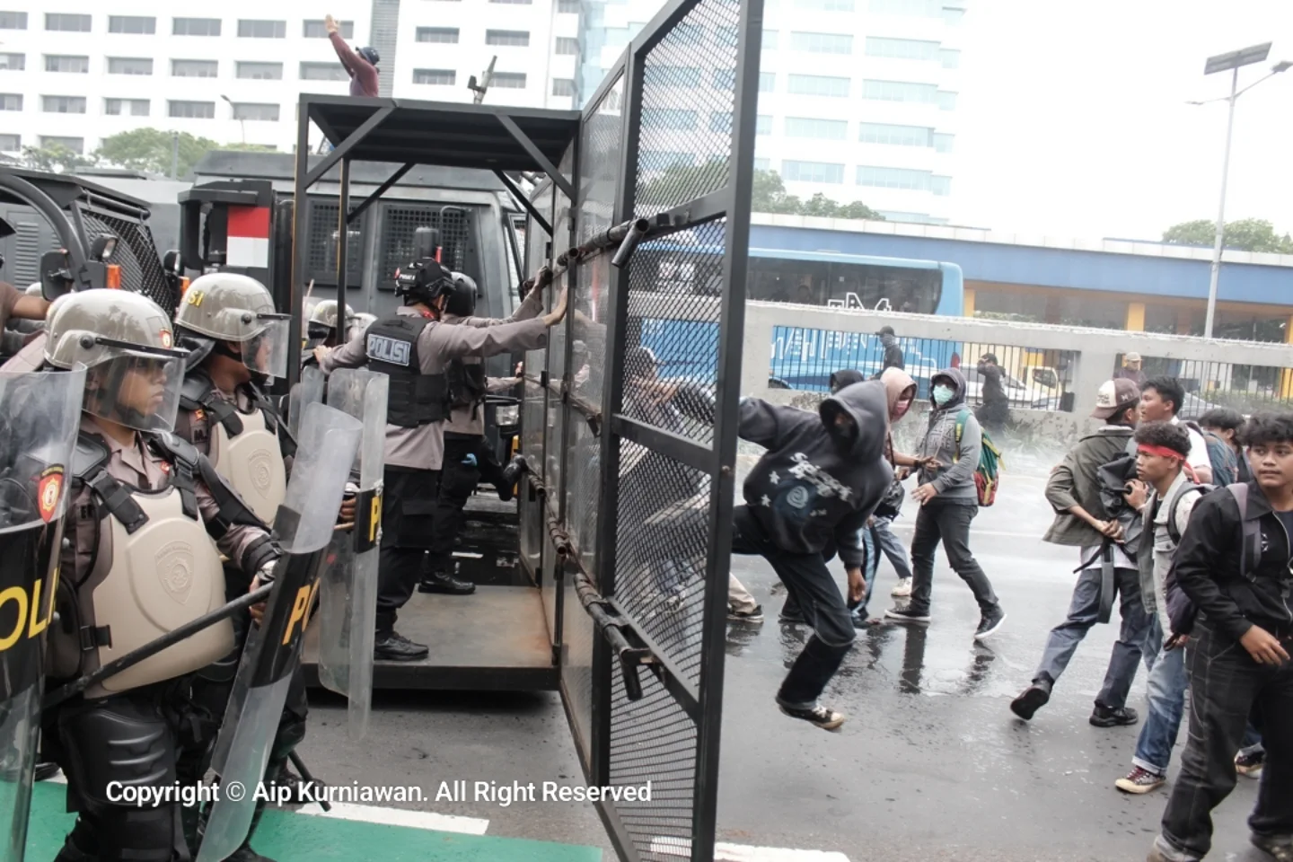 FOTO: Polisi Terlibat Bentrok dengan Masa Aksi di DPR