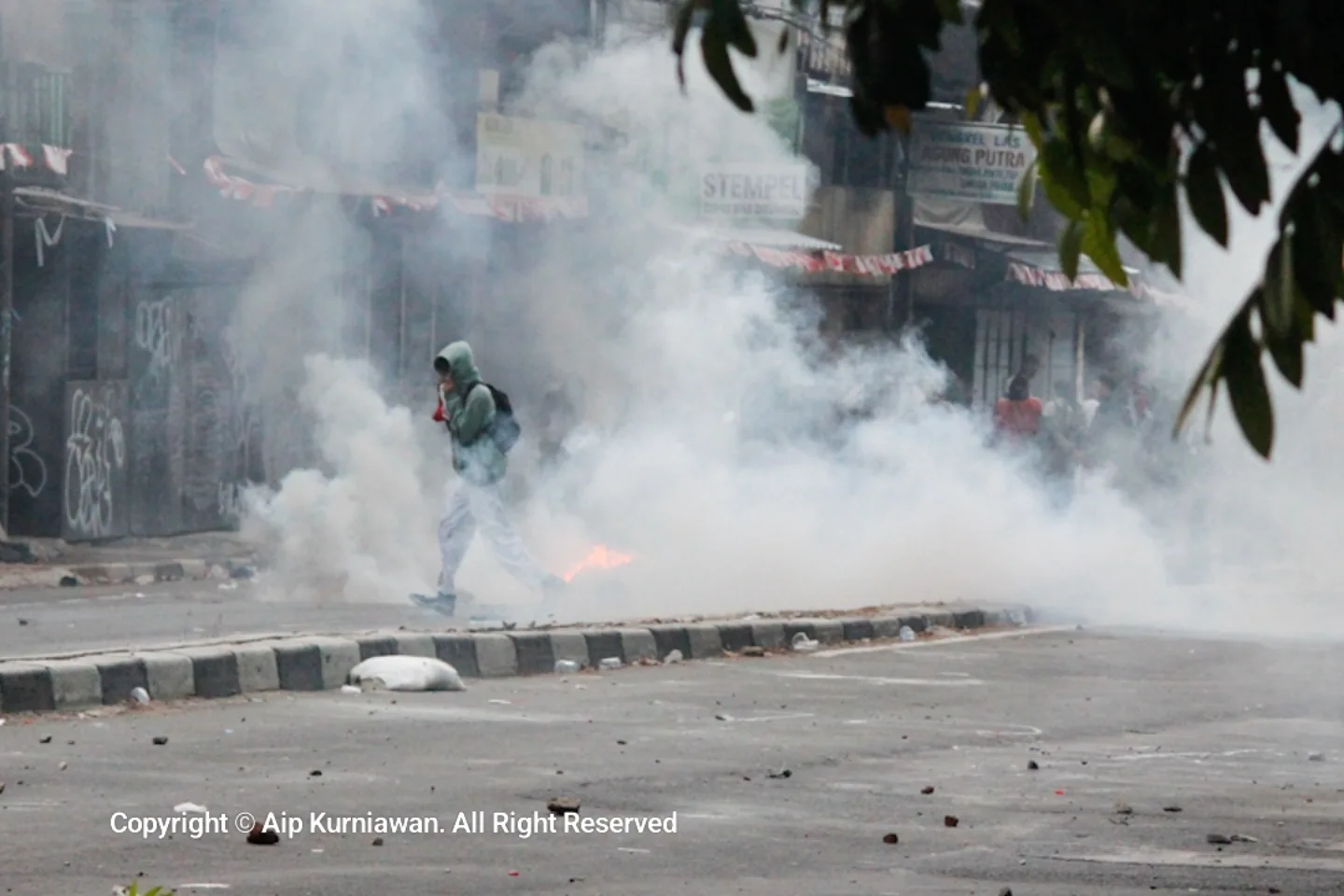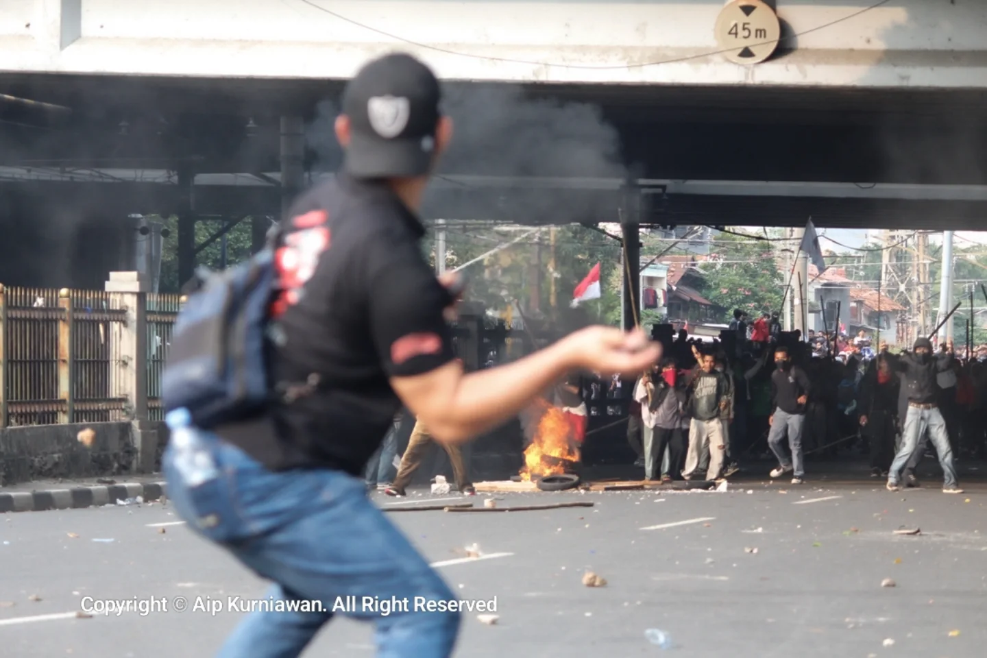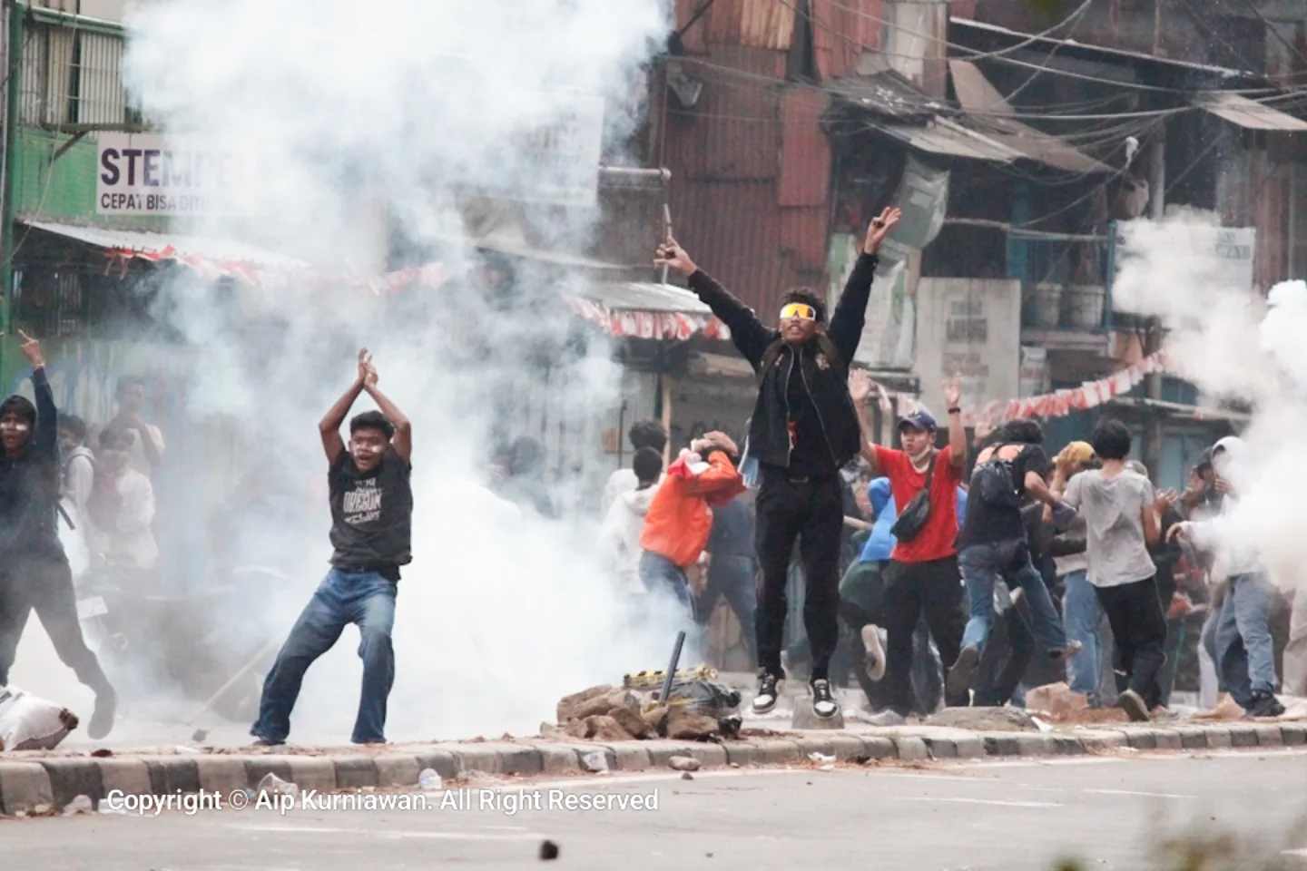 detaktangsel.com JAKARTA – Polisi bombardir masa aksi dengan gas air mata di flyover slipi, Stasiun Palmerah, Senin (25/8/2025). Bentrokan antara polisi dan masa unjuk rasa menimbulkan sejumlah korban dari warga, polisi hingga jurnalis. FOTO: DETAK/Aip Kurniawan