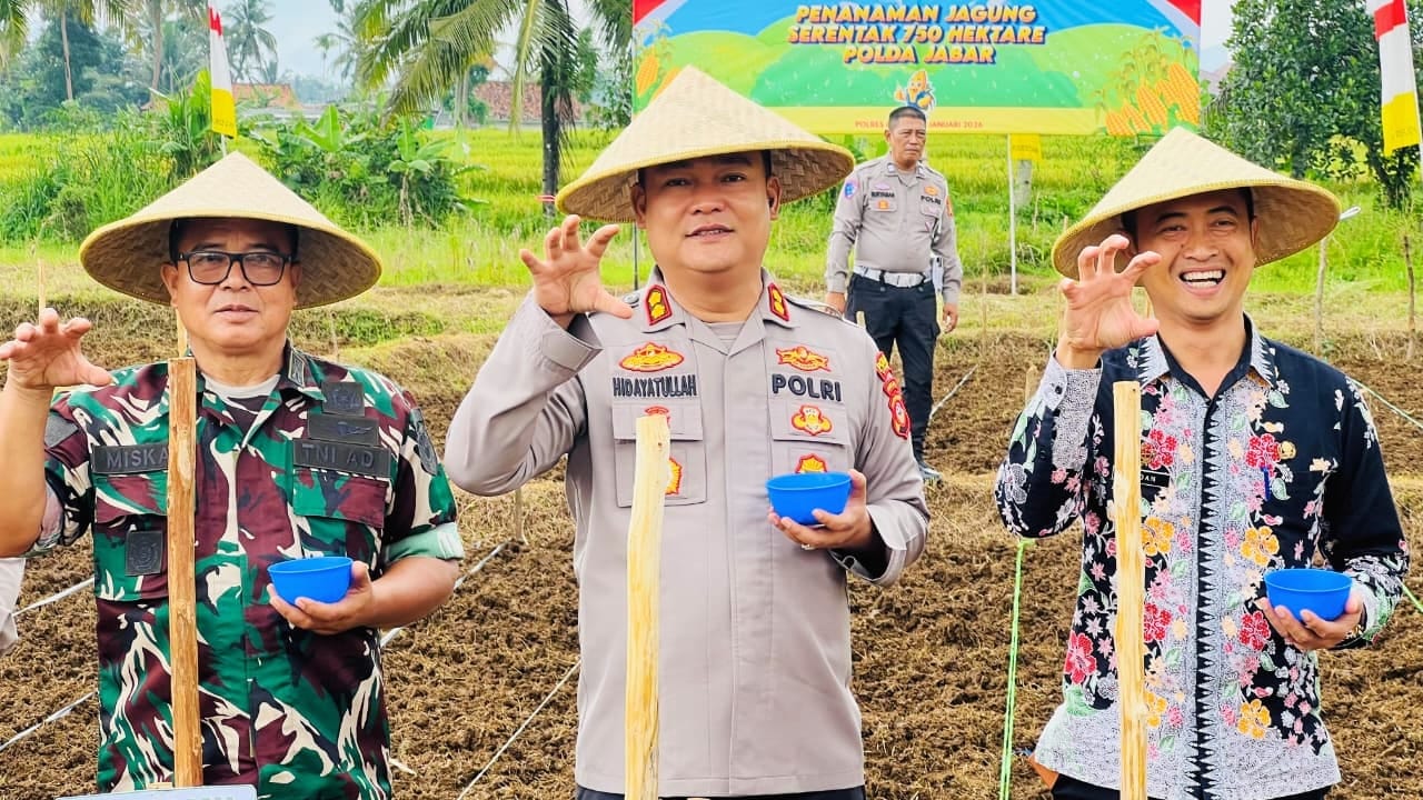 detaktangsel.com CIAMIS-Kepolisian Resor Ciamis menunjukkan komitmen nyata dalam mendukung program ketahanan pangan nasional dengan melaksanakan kegiatan Penanaman Jagung Serentak 750 Hektare tingkat Polda Jawa Barat yang dipusatkan di wilayah Kabupaten Ciamis. Kegiatan ini berlangsung di lahan baku sawah Desa Panyingkiran Kecamatan Ciamis Kabupaten Ciamis dan menjadi bagian dari upaya bersama mewujudkan swasembada pangan nasional, Kamis (29/01/2026).