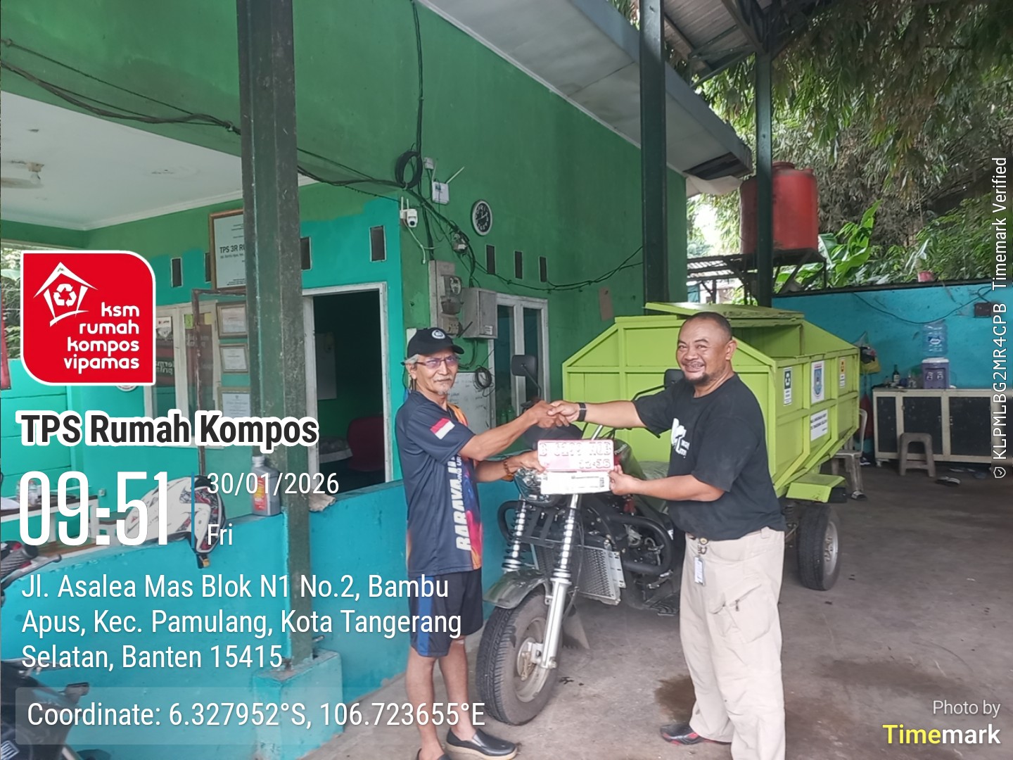 detaktangsel.com, KOTA TANGSEL – TPS 3R/KSM Rumah Kompos Vila Pamulang Mas tahap 2 (Vipamas 2) menerima bantuan kendaraan operasional roda tiga (R3) dari Dinas Lingkungan Hidup (DLH) Kota Tangerang Selatan. Bantuan satu dari lima unit kendaraan operasional R3 tersebut merupakan hibah DLH ke TPS 3R yang ada dan beropesional dengan baik sebagai peremajaan kendaraan operasional dari anggaran DAK tahun 2025. Penyerahan bantuan tersebut berlangsung di TPS 3R Rumah Kompos Vipamas 2, Kelurahan Bambu Apus, Kecamatan Pamulang, Jumat (30/01/2026).